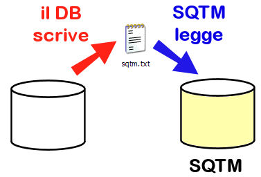 Il file può essere creato con una qualsiasi periodicità dal database, e deve sempre contenere tutti i dati che si vogliono condividere con SQTM; il percorso in cui deve trovarsi il file dev'essere accessibile da SQTM (dunque il file sqtm.txt deve trovarsi sullo stesso computer o su un computer collegato in rete con la macchina su cui viene avviato l'applicativo SQTM).