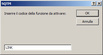 Per installare il collegamento in SQTM è necessario selezionare dal menu principale Utilità | Avanzate e specificare la funzione scrivendo LINK nella casella di testo.