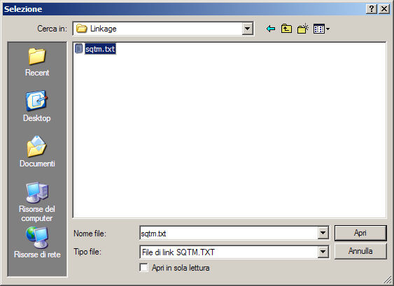 Specificare, ora, il percorso in cui il file SQTM.TXT si trova: